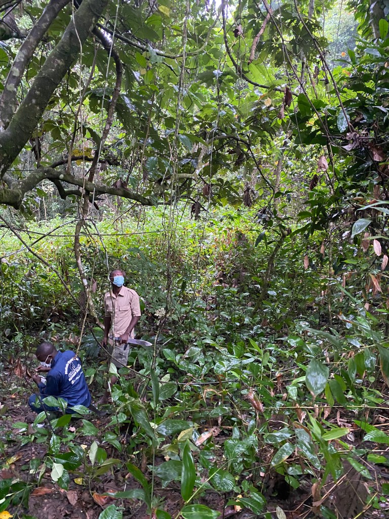 After a night of forest noises, we woke up only to hear that the chimps have been spotted and that we have to hurry up as they are moving constantly and this time up the mountains. We were lucky to spot them in a more open part of the forest and we were allowed to stay with them for an hour. Strict rules apply, we also had to wear masks over mouth and nose … with all the humidity, not easy to see through glasses or camera lenses!