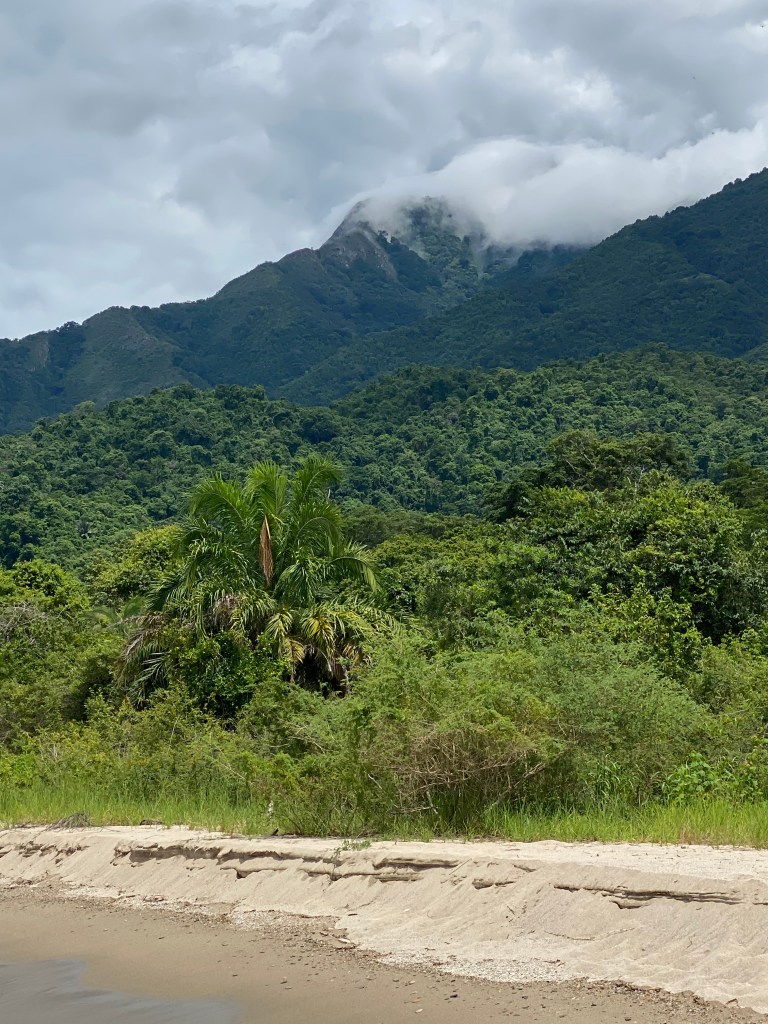 Am Hauptquartier des Parks angekommen, haben wir Klamotten, Essen, Wasser und uns auf ein kleines Boot verfrachtet und sind 20 Minuten an der Küste entlang zur Unterkunft gefahren. Die Bandas, kleine Häuser, des Nationalparks lagen mitten im Wald und trotzdem nur 100m vom schönen Strand des Sees entfernt. Es gibt keine Straßen im Nationalpark, nur Wanderwege … diese würden wir morgen mal ausprobieren.