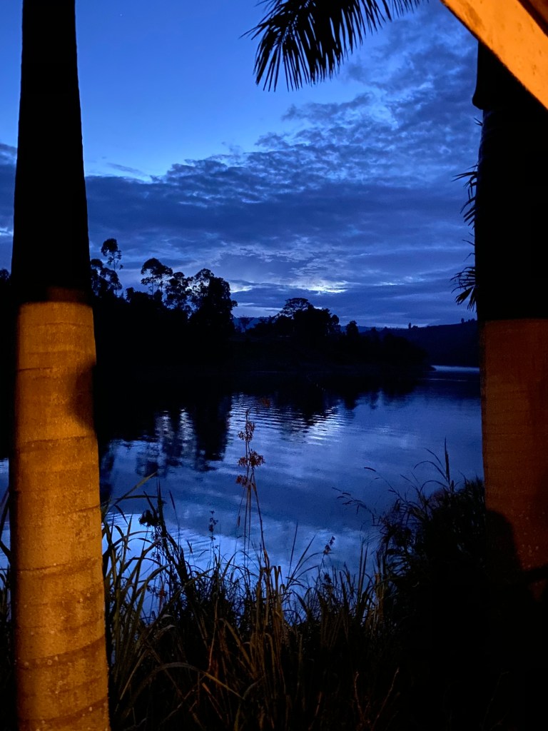 Lake Edward is divided between Uganda and DR Congo – again the Congo, a country that has been with us since Zambia. The Virunga volcanos are just around the corner, very tempting!