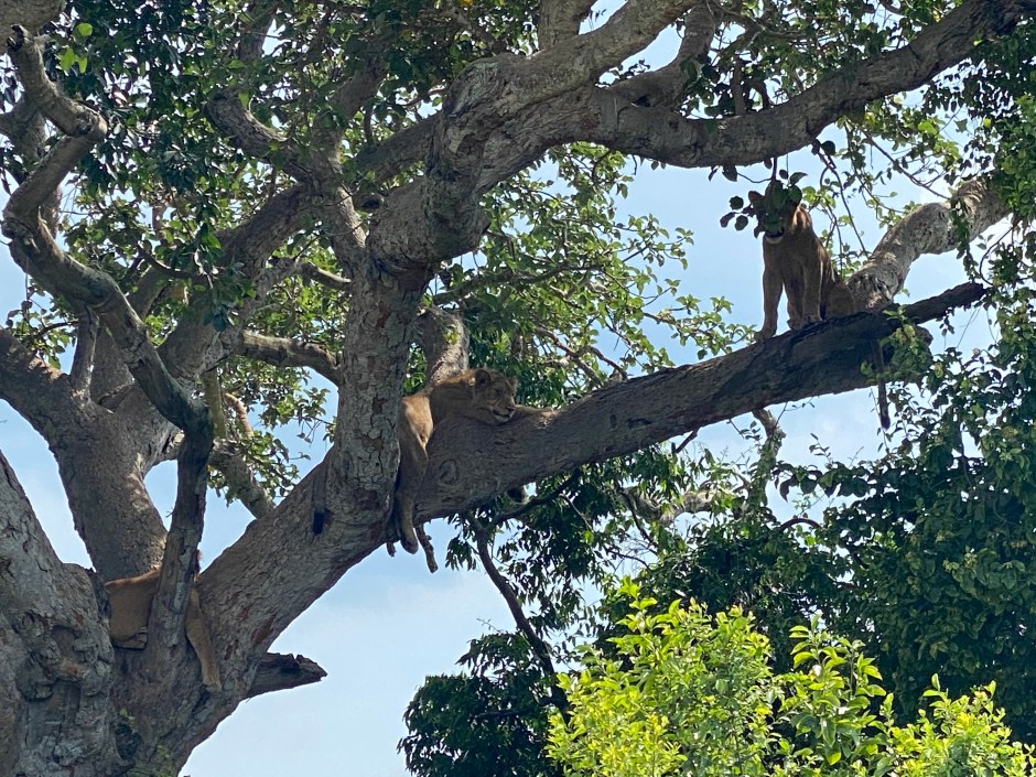 Warum die Löwen das machen ist bisher nicht vollständig geklärt. Eine Theorie ist, dass sie oben im Schatten der Bäume die kühlere Briese genießen und sich vor der Hitze des Tages schützen, eine andere Theorie besagt, dass dort oben weniger Tsetsefliegen sind, die schmerzhafte Stiche verursachen. So oder so war es total schön und einzigartig!
