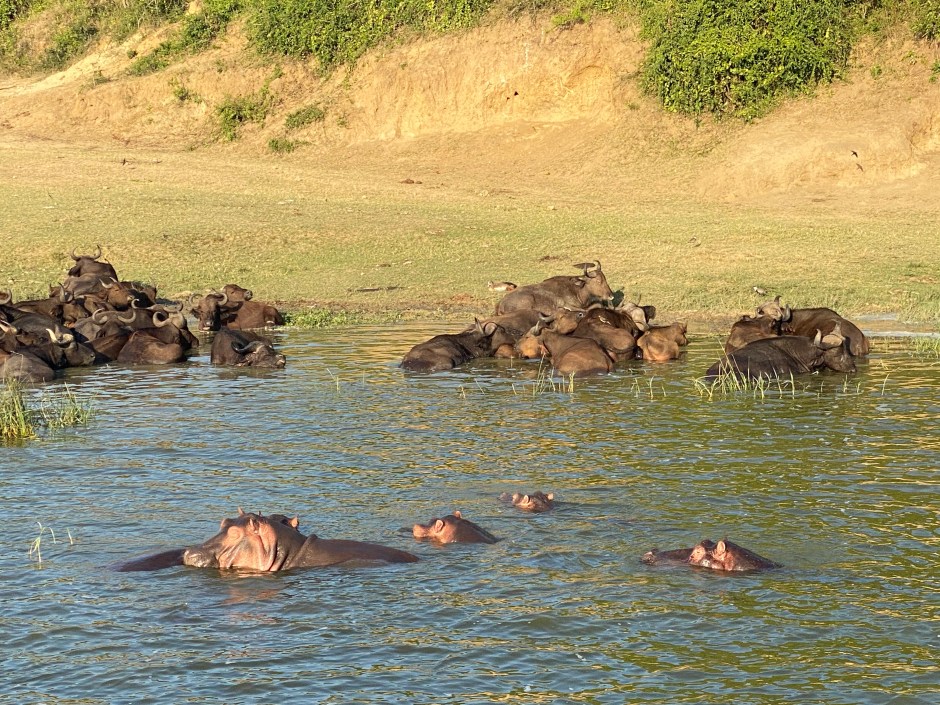 Die Bootsfahrt brachte endlich mal wieder den Anblick von Tieren mit sich – wir sahen Elefanten, Büffel, Krokodile und sehr viele verschiedene Vogelarten. Am Ende haben wir dann noch 3 Leoparden am Ufer gesehen – kann man das an einem ersten Januar überbieten??