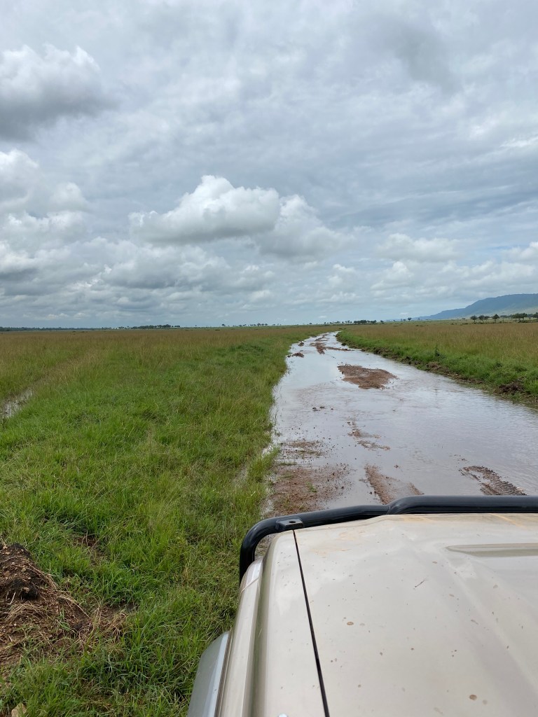 Die Straßenverhältnisse im Park am nächsten Morgen waren auch nicht besser. Viele Wege vor allem um die Flüsse Mara und Talek herum waren unpassierbar und wir konnten uns fast nur auf dem Hauptweg bewegen. Trotzdem haben wir viele Tiere gesehen, unter anderem Büffel, Flusspferde und Krokodile. Was wir allerdings auch realisierten, war die wunderschöne Landschaft, die endlos erschien. Wir haben keinen Druck, unbedingt die Big Five zu sehen – und können so die Landschaft genießen. Und da uns mitten am Nachmittag eine eigentlich nachtaktive Civet Katze vor das Auto gelaufen ist, wurde auch die Katzen-Quote irgndwie erfüllt 🙂