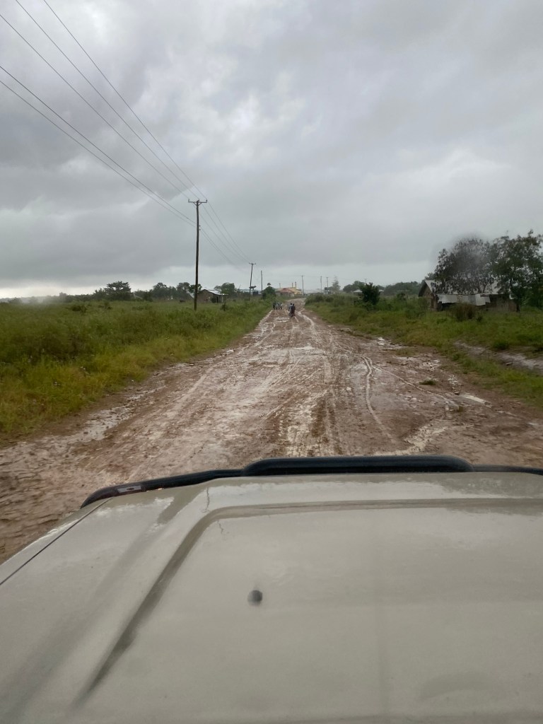 As we got onto the gravel road, the rain started. And the gravel road became muddy. Not sure how boda bodas did manage, but we were glad to have some rocky patches in between to not slide through the mud all the time. The road did get worse, with lots of potholes with the size of a VW Polo … but as we approached Diani Beach in the evening the road and the mood got better. We heard that we would have waited 4-5 hours for us to cross with the ferry …