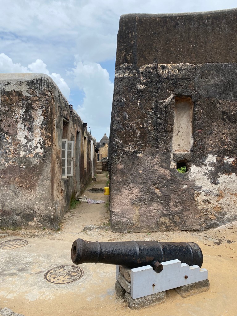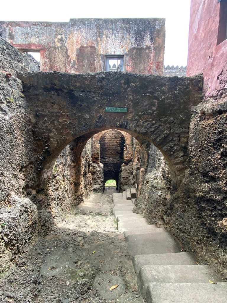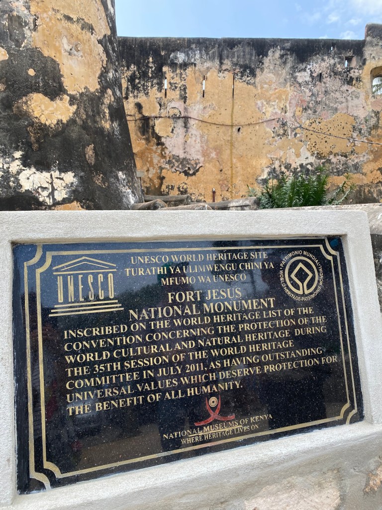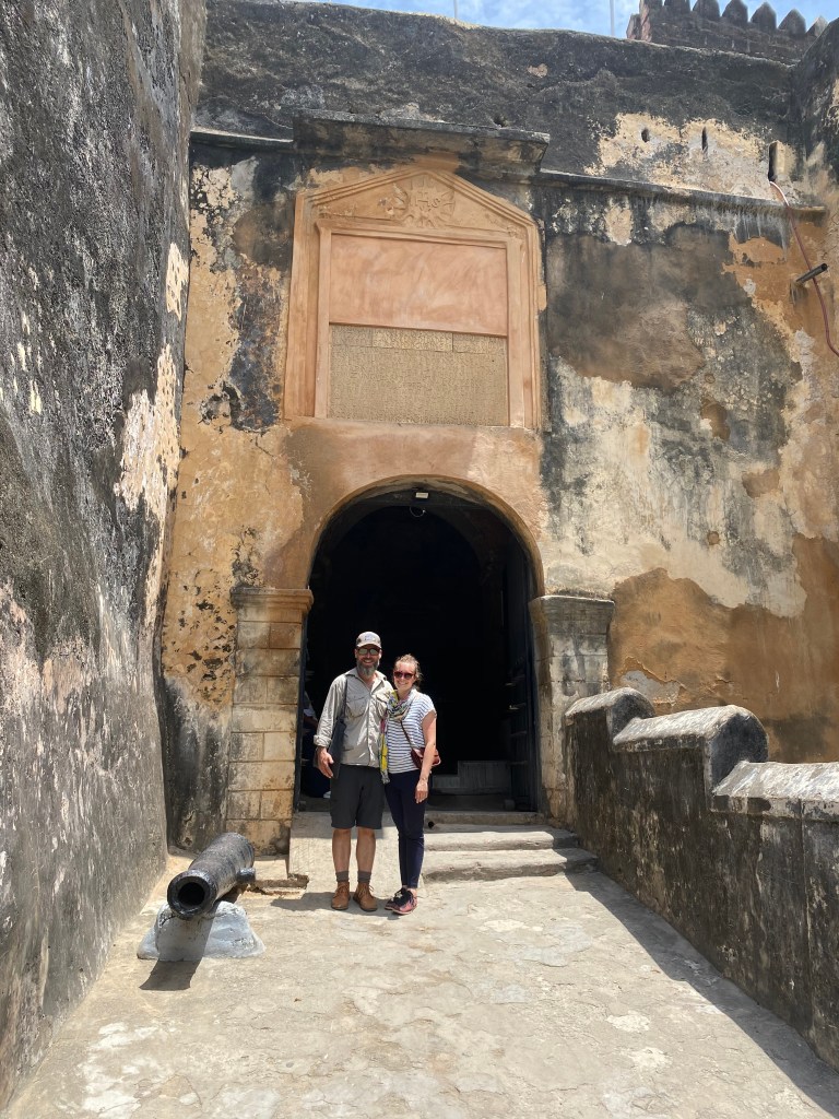 Der erste Stopp brachte uns zu einem sehr alten Fort, Fort Jesus, erbaut von den Portugiesen. Der Grundstein wurde 1592 gelegt und es wechselte oft die Besatzer. Seit 1960 ist es ein Museum, war aber zwischenzeitlich z.B. ein Gefängnis. Die interessante Geschichte wurde uns von einem Guide, Shareef, näher gebracht. Auch der Ausblick auf die Bucht war schön, gelegentlich sieht man Haie um die Stadt herum schwimmen. Wir sahen allerdings leider keine 😦