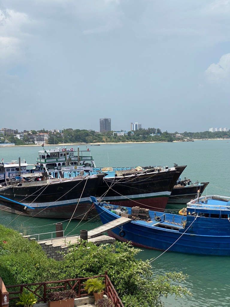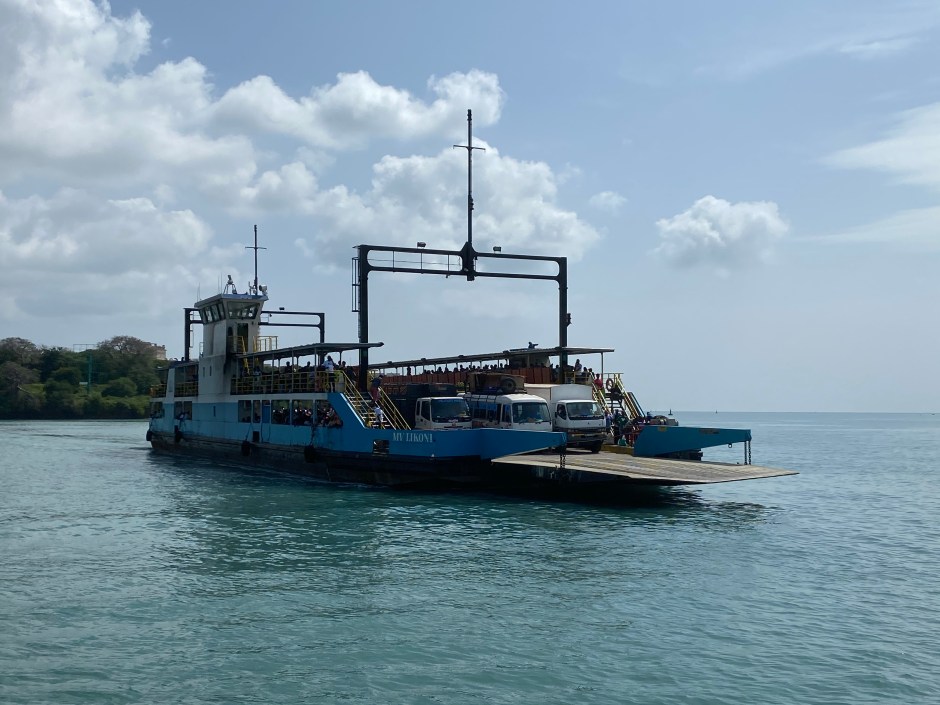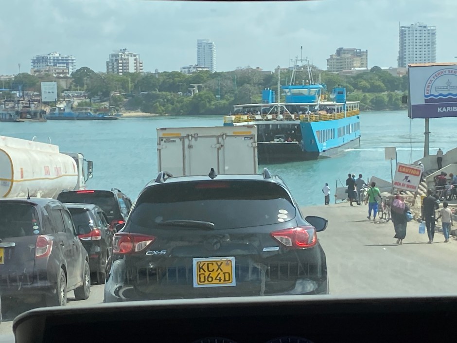 Mombasa lies on an island and is a very important port in East Africa. You see the occasional shark swimming around town (we did not see one) and a lot of history. So the Likoni ferry is the only way to get off Mombasa island towards the South. Coming from Nairobi, there is a causeway … currently the whole road is under construction, but traffic is somehow flowing. But as soon as one of the four ferries taking people, vehicles and goods off the island is not working, it’s chaos. It can take six hours from Mombasa airport to Diani Beach easily, which is a 40km stretch…