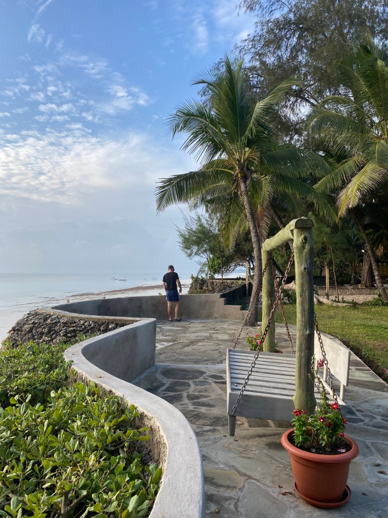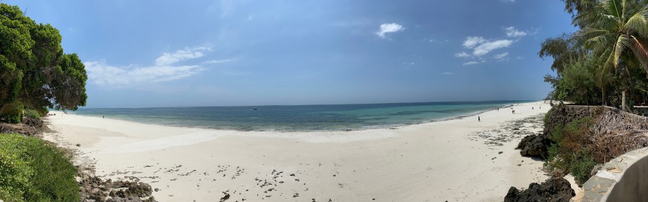 Wir sind in Diani vom Camping abgewichen und in eine Ferienwohnung gezogen. Diese lag direkt am Meer, leider erreichte die Brise die Wohnung irgendwie nicht und dafür hatte das Grundstück der Ferienwohnung einen direkten Strandzugang und einen traditionell überdachtes Pavillion unter dem man es mit einer angenehmen Brise herrlich aushalten konnte. Kaltes Duschen war nur bis 10 Uhr möglich, da anschließend alle Wasserquellen mindestens über 20 Grad Celisius hatten. Dusche, Pool und vom Meer schweigen wir mal lieber ganz …