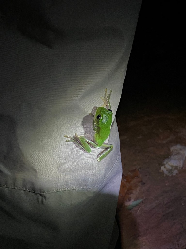 Chameleons glow white in the dark, so is relatively easy to spot them. Funnily enough, two species were in the tree just next to the reception of the Forest Reserve. And as chameleons can be stationary in the same tree or bush for a few days, we had the slight feeling that they were placed there … be it or not, we enjoyed the time looking for the chameleons and even letting them climb around us.