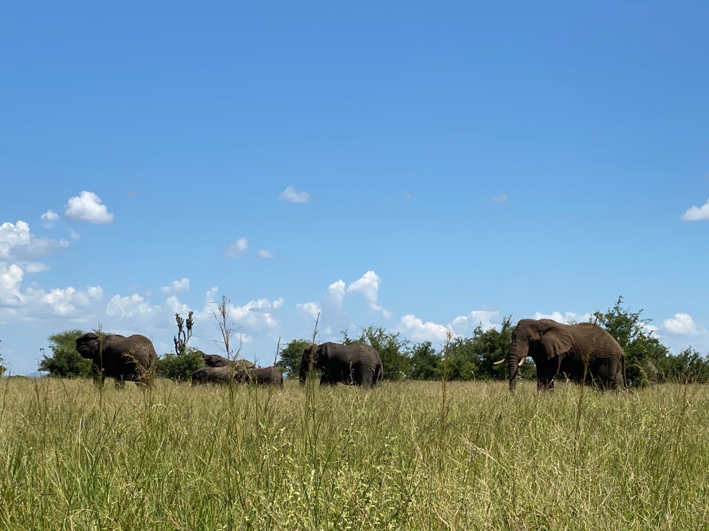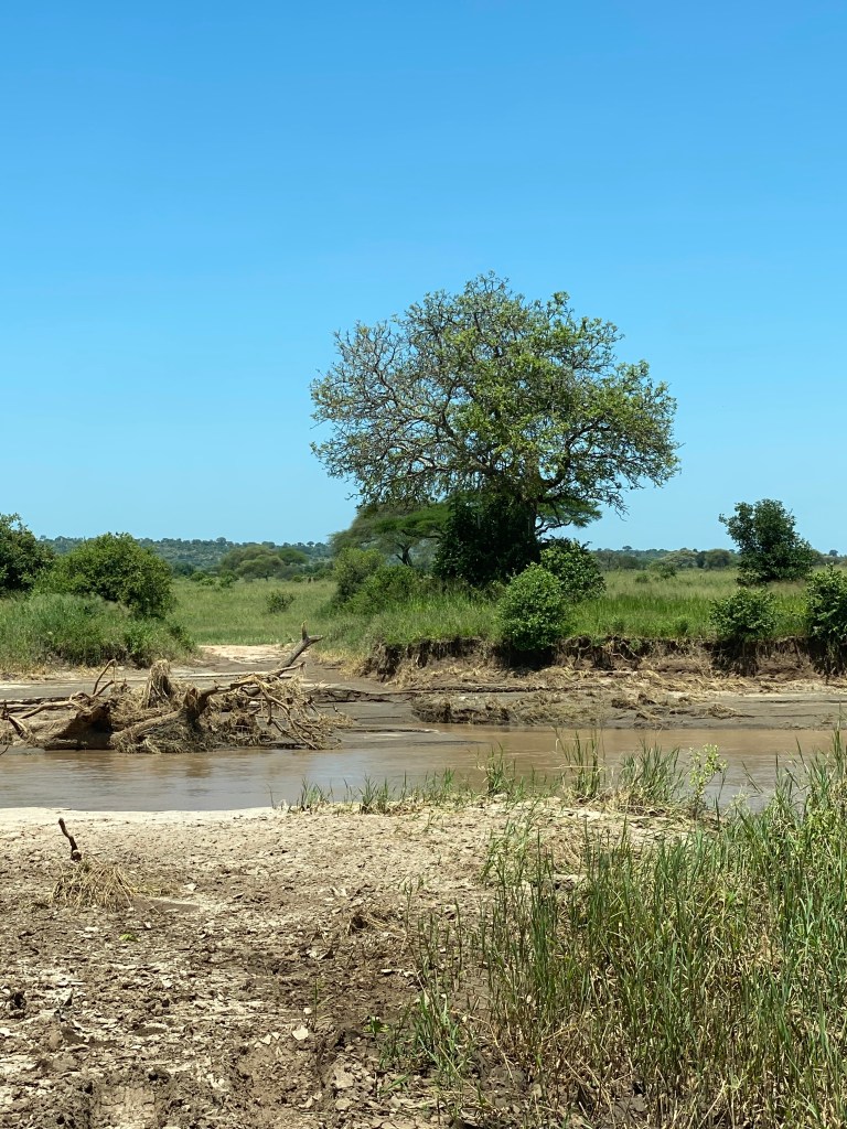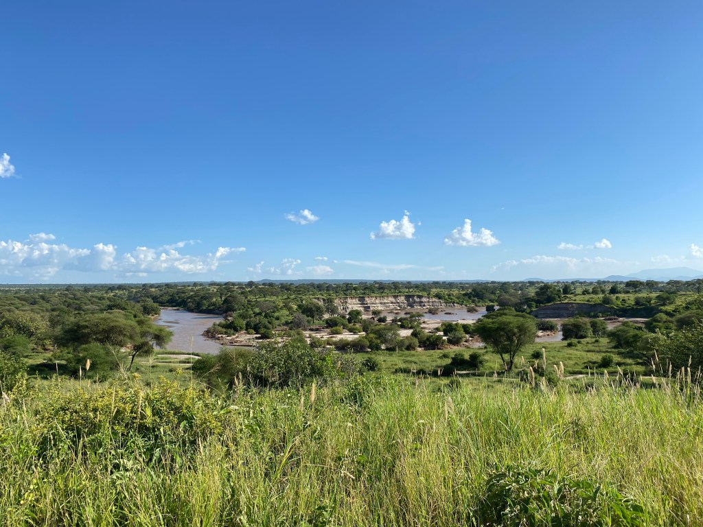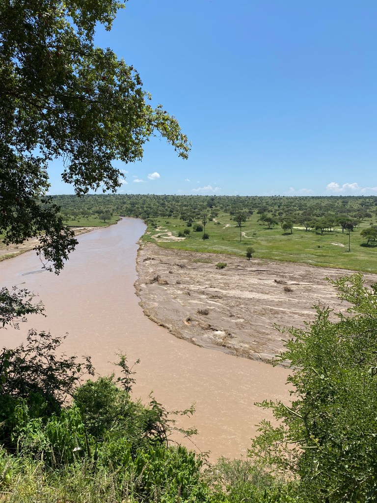 Wir sind gleich um 6:30 Uhr rein in den Park und haben auf dem Weg zum Picknickplatz fürs Frühstück eine Hyäne mit zwei Jungtieren sowie zwei Löwen gesehen. Einer davon hatte schwere Verletzungen und blutete stark. Er legte sich ins hohe Gras und wir haben ihn dann in Ruhe gelassen und sind weitergefahren. Viele große Elefantenherden kamen uns entgegen, und auch Affen sprangen in den Bäumen umher. Wir hatten den Picknickplatz mit tollem Ausblick auf den Tarangire Fluss ganz für uns … bis ein großer Pavian auftauchte, sich vor uns hinstellte, sich nicht verscheuchen ließ und unsere Feuchttücher klaute. Die Guten von Woolworth!! Ein herber Verlust …