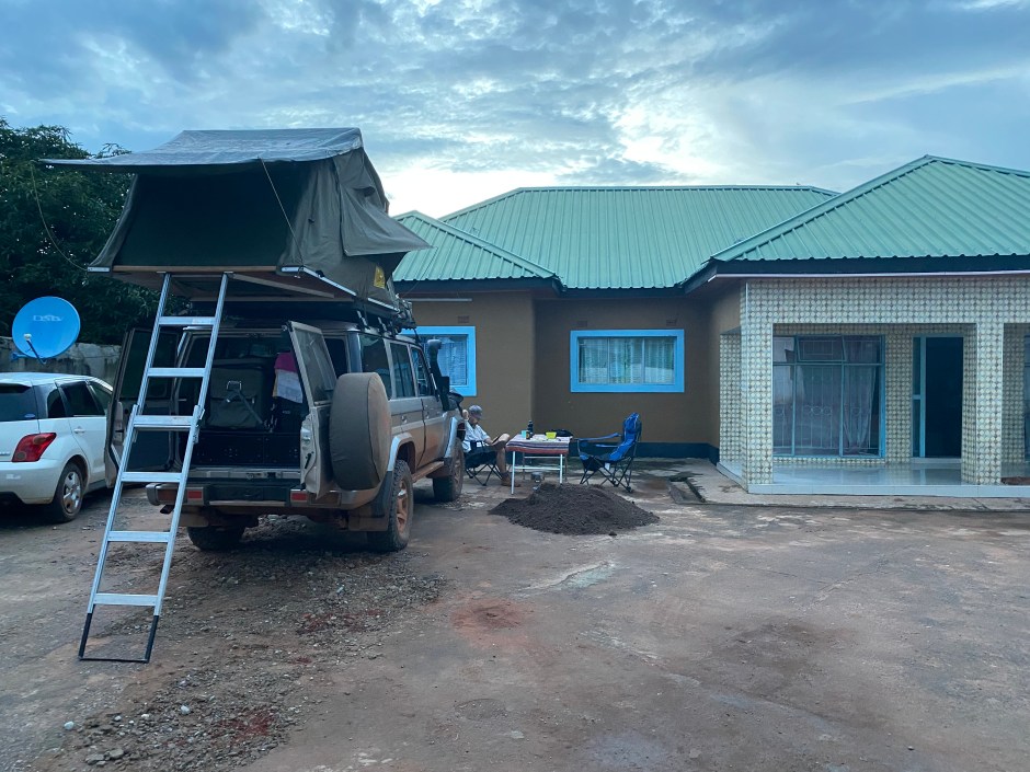 We were not able to get to Mpika that day so we ended up in a town called Isoka. Thanks to the app iOverlander we found Gracious and her lodge and as she was fully booked, we camped in the parking lot. We are pros by now in doing that 🙂