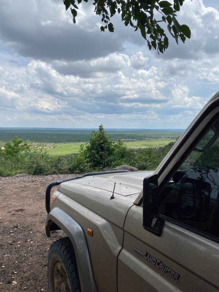 Am nächsten Tag fuhren wir mit einem holländischem Paar welches wir am Vortag an der Grenze getroffen haben nach Sinamatella, das Camp liegt hoch oben auf einem Bergrücken und man schaut weit runter in die riesige Ebene. Einfach toll! Es war sehr warm und wir sahen die Regenwolken am Horizont – vielleicht stand eine Abkühlung bevor?