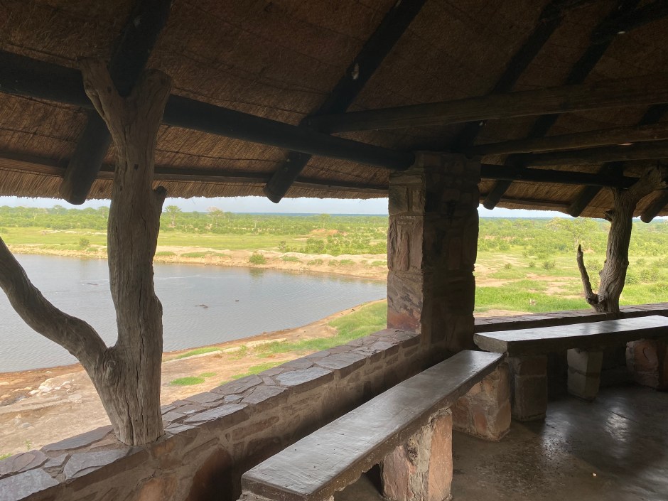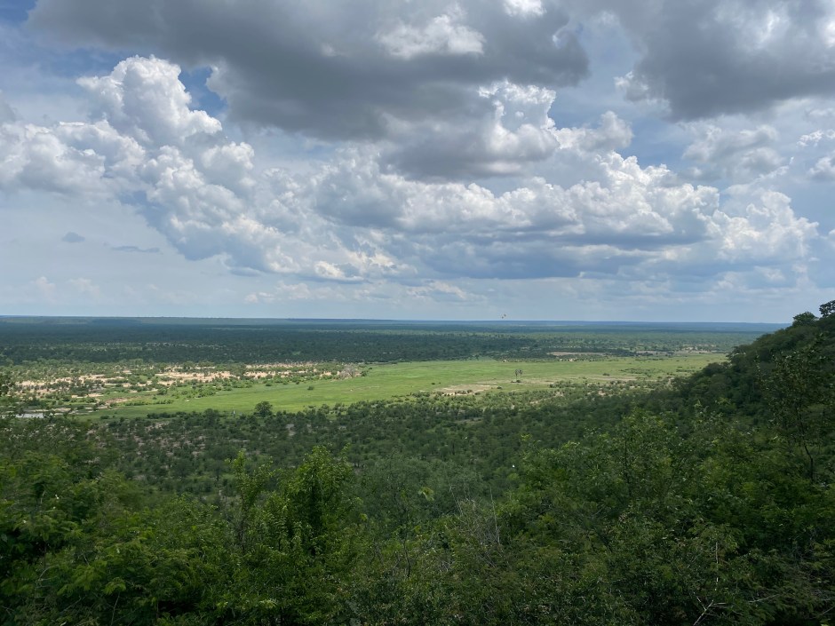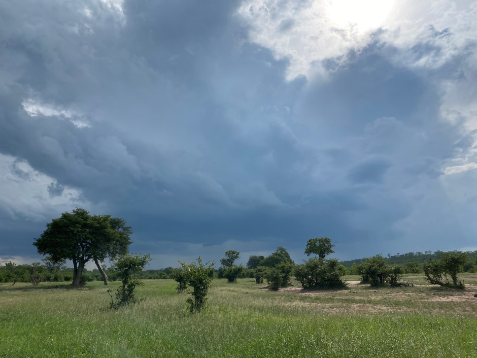 The next day we went up with our temporary travel companions from The Netherlands that we met the day before at Pandamatenga border for a break at Sinamatella. This camp is high up on a ridge overlooking wide plains – what a view! It was hot but we saw the rain clouds approaching …