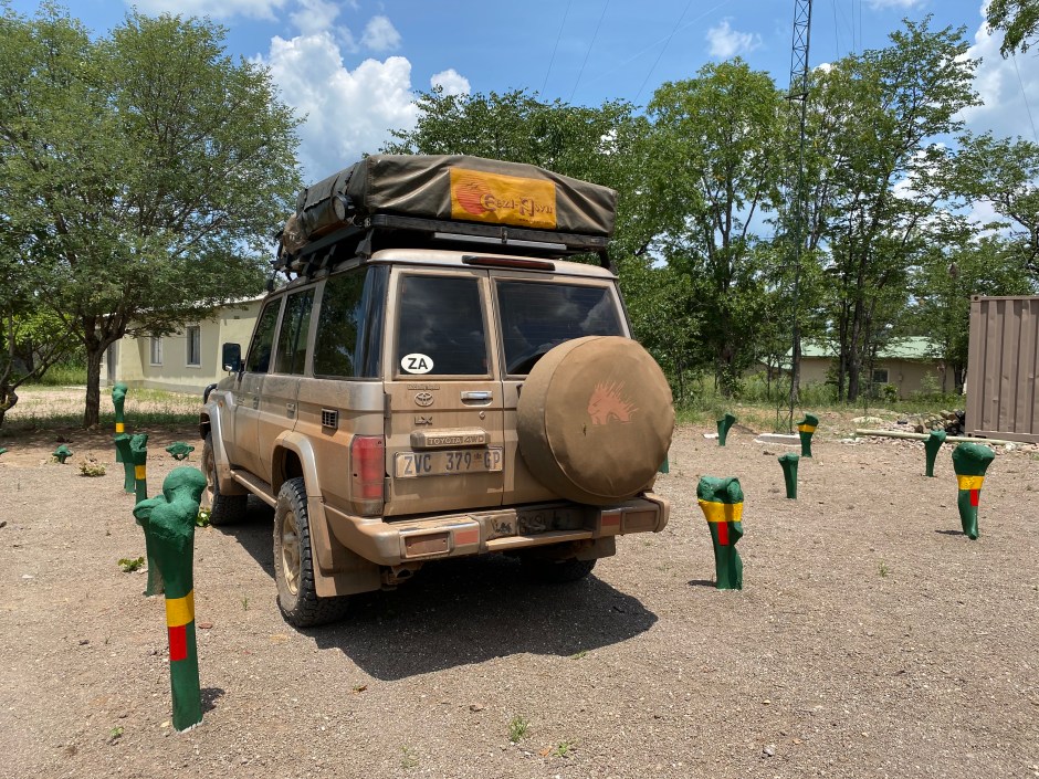 Checking out of Botswana was a breeze, and then off we went through no mans land to Zimbabwe. The officials on the Zimbabwe side were also surprised to see us. They facilitated the visa process and we filled in the papers for the Cruiser. And because we still had Comesa insurance, we only paid the road fee and carbon tax. Lucky us!