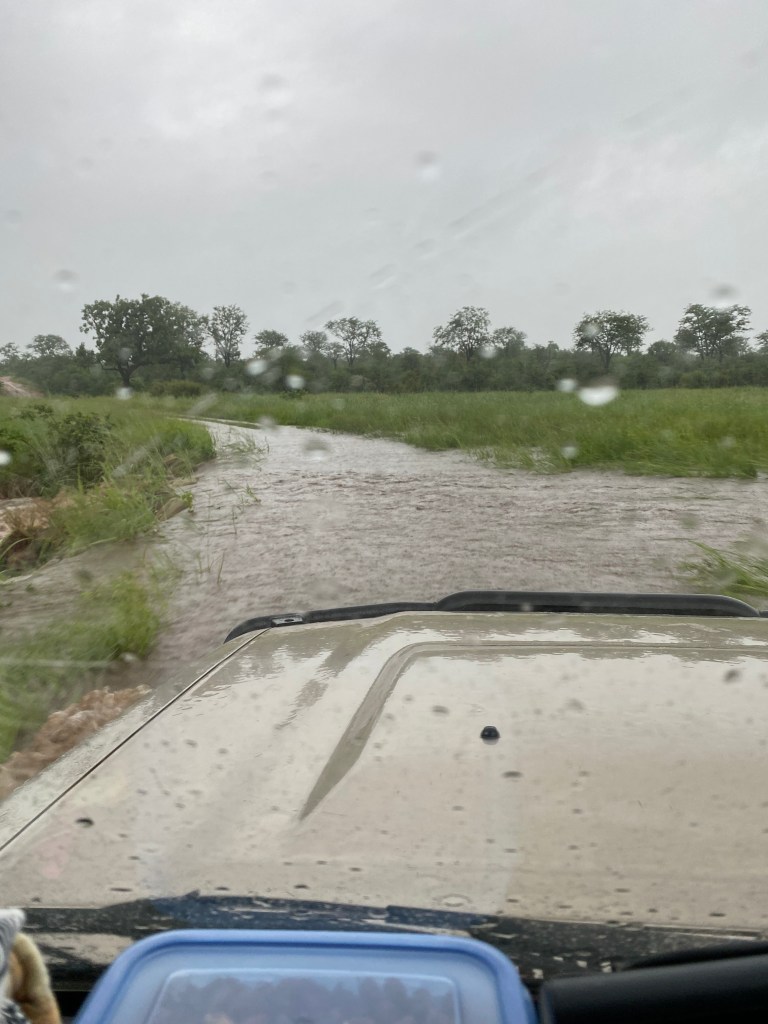 But… we also got to the end 8km before Sinamatella. A stream that was not even on any map was a fast flowing river, with water up to Christians hip and still rising. The area around became a lake and our vehicles had to be moved out of the area.